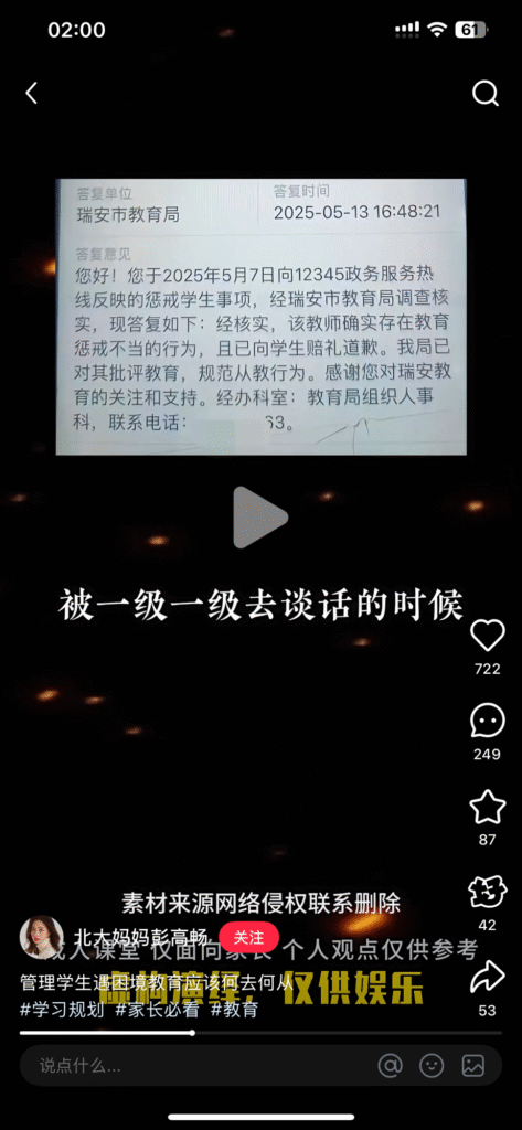 再有,这件事是老师把小孩放窗户边,举起来,让他以为自己将要从楼上要掉下去了,这本质就是虐待。大部分博主也承认这老师行为有过错。那么这件事就不能上升到什么老师缺乏教育对权利这个高度,而恰恰说明现在老师存在不当教育的现象。